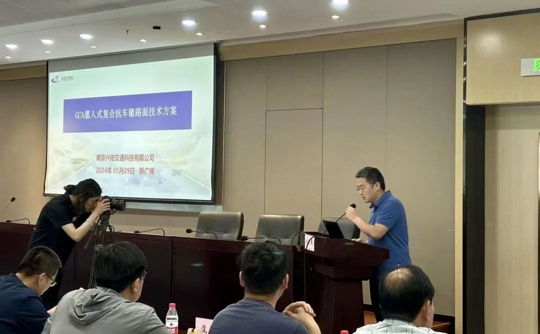 會(huì)中就瀝青路面綠色低碳長(zhǎng)壽命周期養(yǎng)護(hù)成套技術(shù)、功能性路面技術(shù)、GCA灌入式復(fù)合抗車轍路面技術(shù)方案等技術(shù)產(chǎn)品進(jìn)行詳細(xì)介紹。南京市交通運(yùn)輸局等領(lǐng)導(dǎo)對(duì)于興佑交科的技術(shù)研發(fā)實(shí)力表示高度的認(rèn)可,對(duì)于相關(guān)的技術(shù)產(chǎn)品表達(dá)了濃厚的興趣。