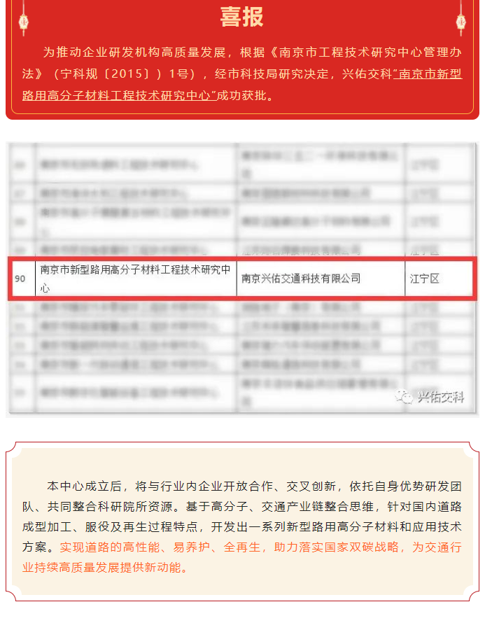 喜報(bào) | 興佑交科入選“2022年度南京市工程技術(shù)研究中心”認(rèn)定名單
