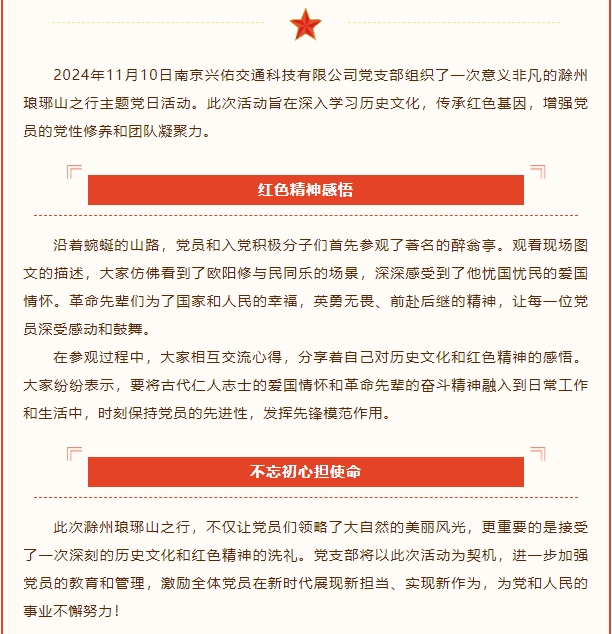傳承紅色基因,領(lǐng)略瑯琊之美——南京興佑交科開(kāi)展主題黨日活動(dòng)