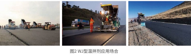 瀝青溫拌劑是新型聚烯烴類瀝青改性劑,具有一定降低施工溫度的作用,是 瀝青路面施工過程中重要的添加劑。 WJ 型溫拌劑能夠降低瀝青混合料的拌合和施 工溫度,同時WJ 型溫拌劑在瀝青中形成網(wǎng)狀的晶格結(jié)構(gòu),增加瀝青混合料的穩(wěn)定性,提高路面的抗車轍性能。