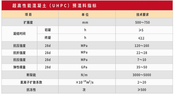 超高性能混凝土(UHPC)是一種新型的混凝土結(jié)構(gòu)材料,結(jié)合了超細(xì)粒聚密材料設(shè)計(jì)理論與纖維增強(qiáng)技術(shù),是由超細(xì)活性粉末、水泥、優(yōu)質(zhì)細(xì)骨料、高強(qiáng)度纖維等組分,通過優(yōu)化級(jí)配設(shè)計(jì),經(jīng)特定工藝制備而成的復(fù)合材料,具有超高強(qiáng)度、高韌性、低滲透性和高體積穩(wěn)定性。